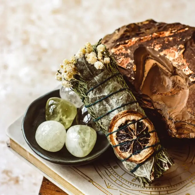 Bring balance, clarity, and protection to any space with our handcrafted Sage, Cedar, Orange & Bay Smudge Sticks. Each bundle is thoughtfully assembled using ethically sourced white sage, wild cedar, sun-dried orange slices, and aromatic bay leaves.